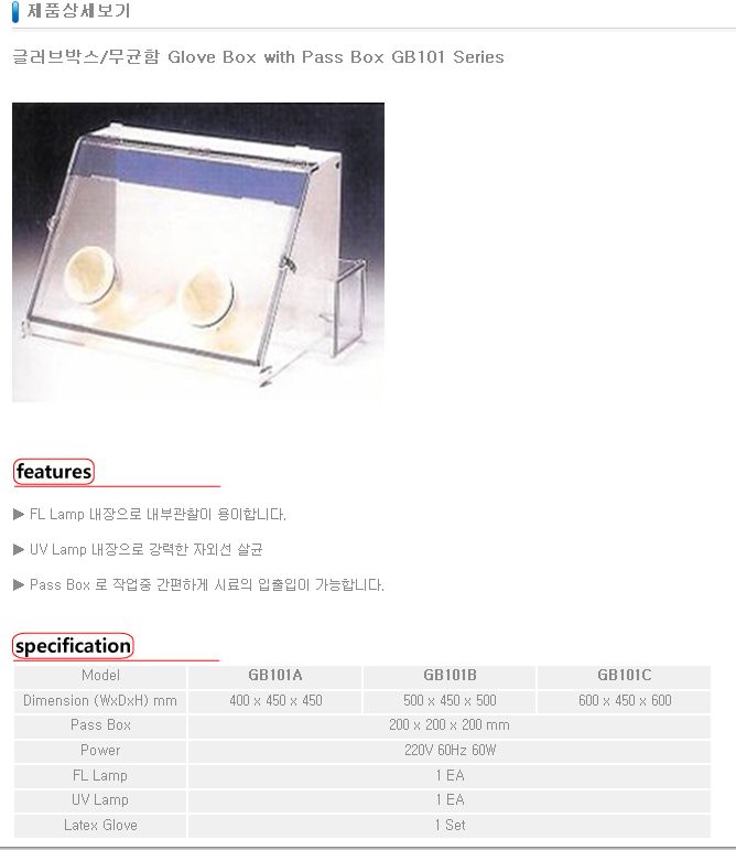 ±Û·¯ºê¹Ú½º/¹«±ÕÇÔ Glove Box with Pass Box GB101 Series